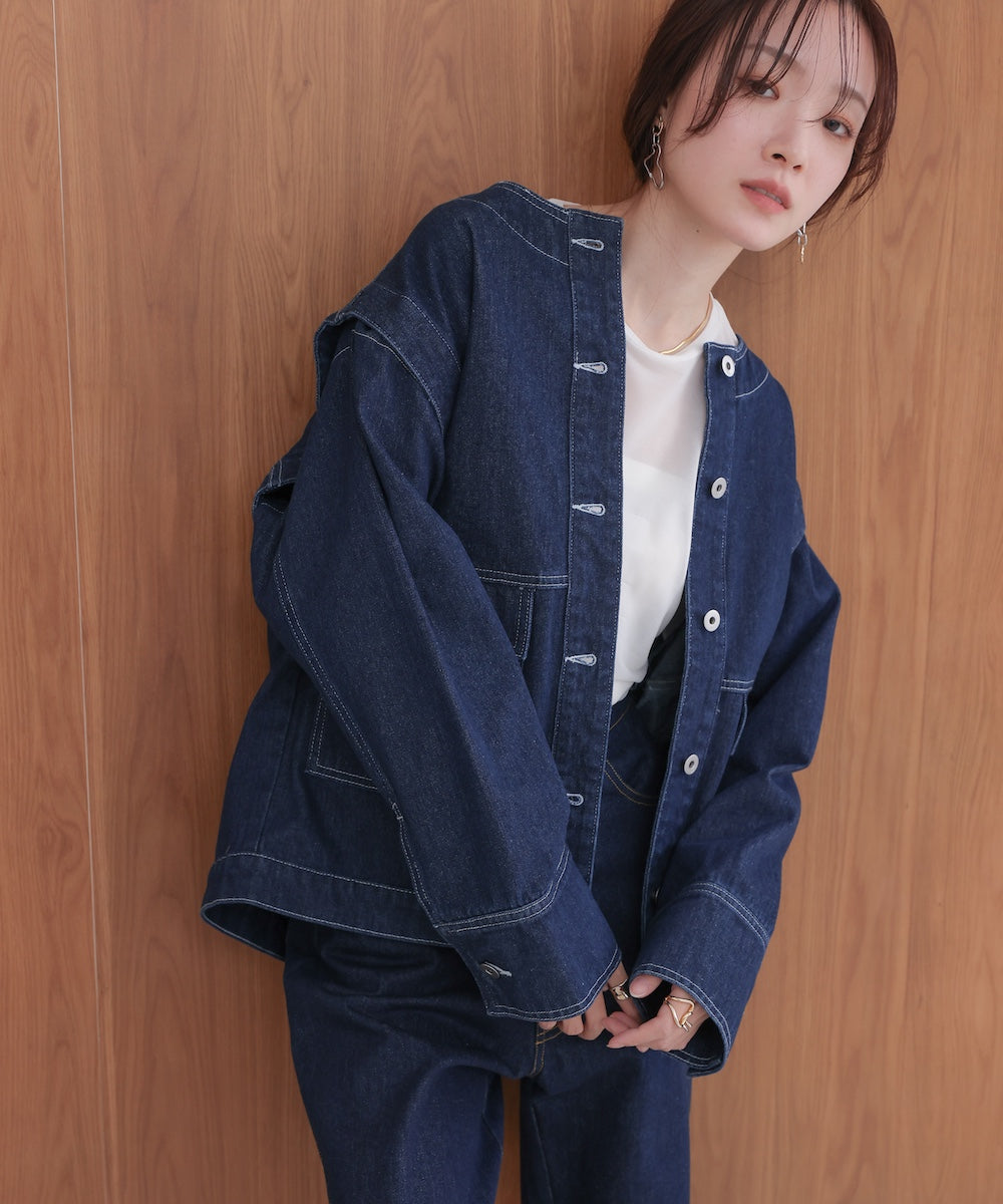 【M・Lサイズ展開】ウエストデザイン ルーズデニムパンツ