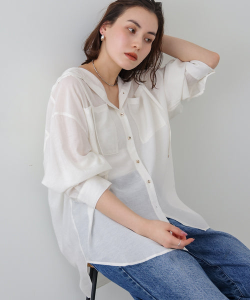 大人の抜け感。メタルボタンが光る「品格」フーディシャツ