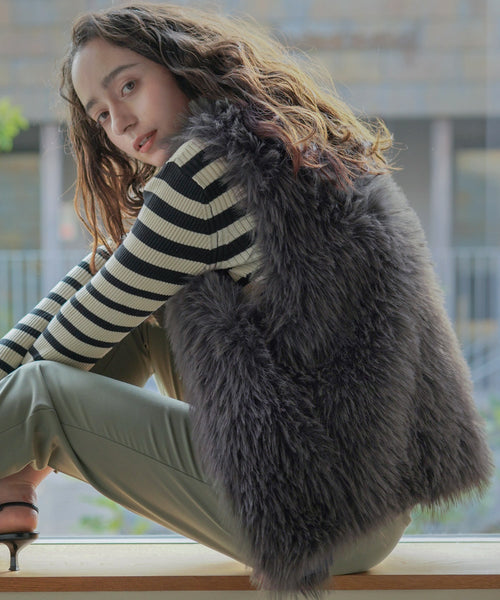 ふわふわのフェイクファーが目を惹く、上品なベストです。いつものコーデにプラスするだけで、こなれ感を演出。さっと羽織れる手軽さも魅力です。気になるお尻をカバーする丈で、スタイルアップ効果も期待できます。