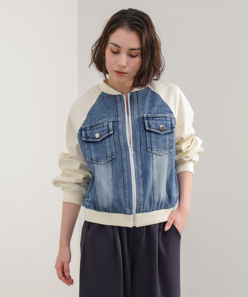 ナイロンの布帛生地とデニムがドッキングしたブルゾン。裏地付きで着脱がスムーズで、カジュアルな上着として季節の変わり目に重宝します。肩まわりがゆったりしているので動きやすいです。