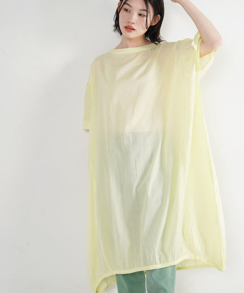 薄手の生地感なのでデニムパンツやプリーツパンツ、スパッツなどとのレイヤードがおすすめです。気分が上がる鮮やかなカラバリで、コーデの主役になること間違いなし!