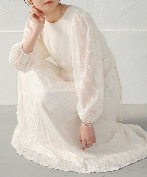 ボリュームスリーブやハイウエストの切り替え、シアー感あるフラワージャガードの素材感などレディライクなディティールが魅力の1着。 甘くなりすぎないよう襟は顔周りをすっきりと見せてくれる丸襟、Vネックを採用。前後2WAYで着用出来るので、気分に合わせて着こなしも変えられます。また衿元についたリボンは首のところでクロスにしたり、リボン結びにしたりとアレンジ可能です。 ウエストはゴム仕様になっているので、ストレスフリーで着用できるのも嬉しいポイント。カラーはコーディネートに取り入れやすいベーシックなブラックとホワイトの2色展開です。