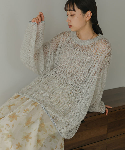 Babでしか手に入らない、アビガイルデザインの透かし編みニット  IVORY H:162 着用サイズ:FREE IVORY H:162 着用サイズ:FREE L.GRAY H:157 着用サイズ:FREE L.GRAY H:157 着用サイズ:FREE PINK H:157 着用サイズ:FREE PINK H:157 着用サイズ:FREE 今年トレンドのシアーニット。インナーを変えて透けさせて着用することで様々な着回しが叶えられます。 今年トレンドのシアーニット。インナーを変えて透けさせて着用することで様々な着回しが叶えられます。 袖口と裾にはキラッと光る糸を使用し、ワンポイントに。