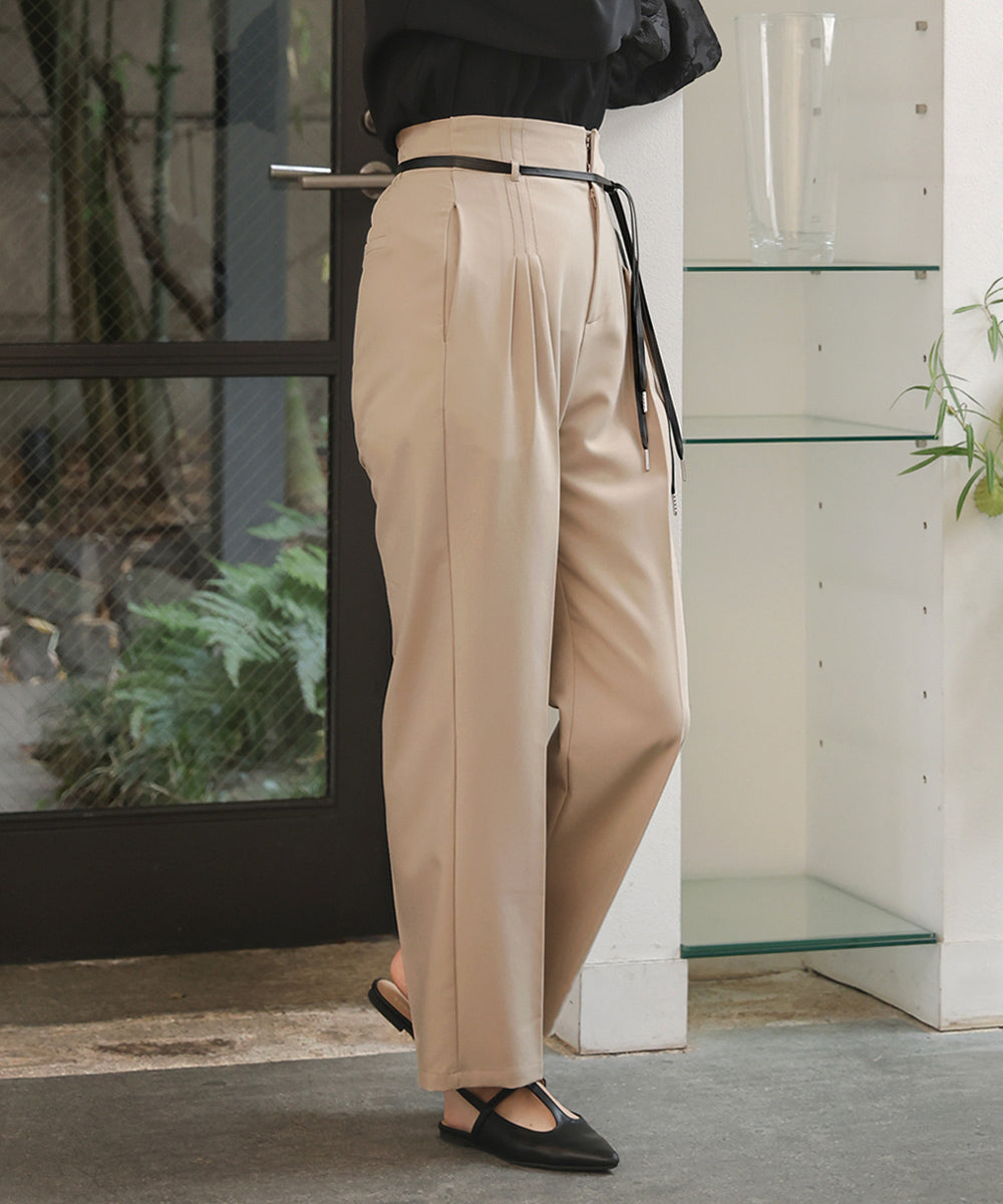 【オケージョンドレス/結婚式/2サイズ展開/SET ITEM/インナー付き/裏地付き】ベルト付きハイウエストスラックス