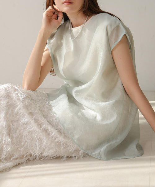 大人気のシアーレイヤードシリーズに、今年もノースリーブタイプが色も新たに登場しました!カジュアルすぎないミニマルなラウンドネックと、すとんと落ち感のいいシルエットが 甘くなりがちなシアーアイテムに上品さをプラスします。カットソーとレイヤードされた着映えが叶うデザインで、肩を覆うフレンチスリーブも安心感があり、様々な着こなしでロングシーズン楽しめる1枚です。