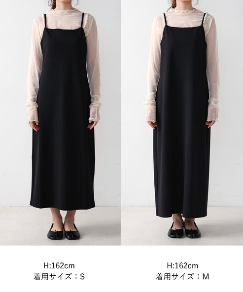 シンプルな美シルエットキャミワンピースにパールの肩紐をアクセントにしました。