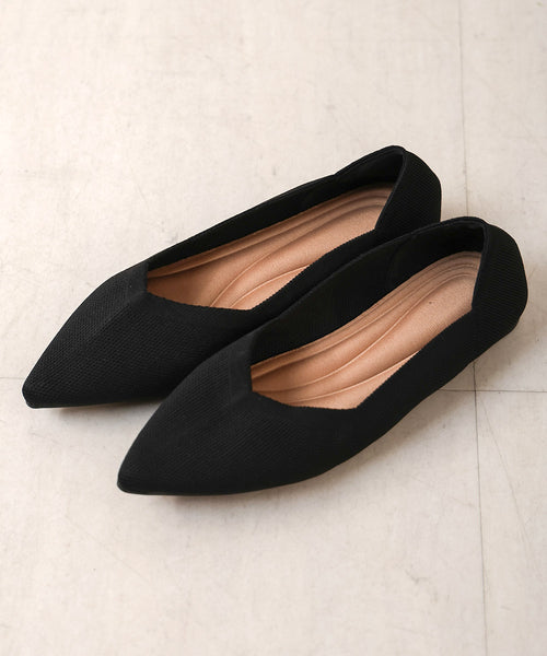 定番のフィットパンプスをブラッシュアップ!! 人気のニットパンプスです。ニット素材になるので、収縮もあり履いた方の足に馴染む素材です。 今回は、ポインテッドトゥの中に柔らかい芯が入りました。芯が入ることで形状を維持でき、強度も増し丈夫になっております。