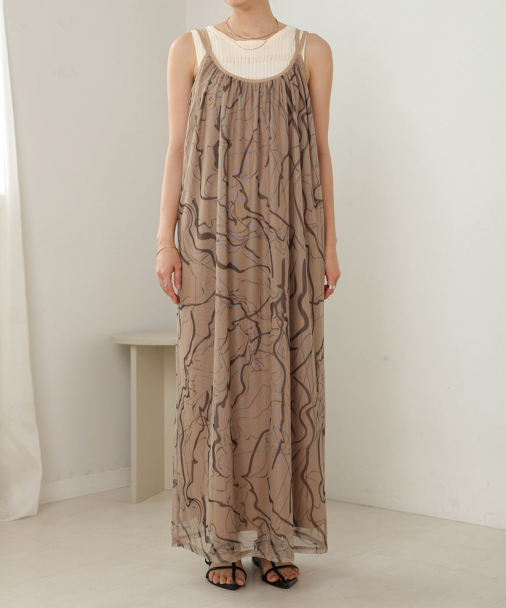 【S・Mサイズ展開】マーブルシアーメッシュキャミワンピース