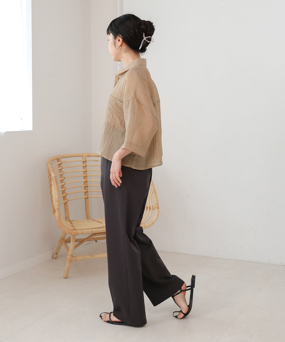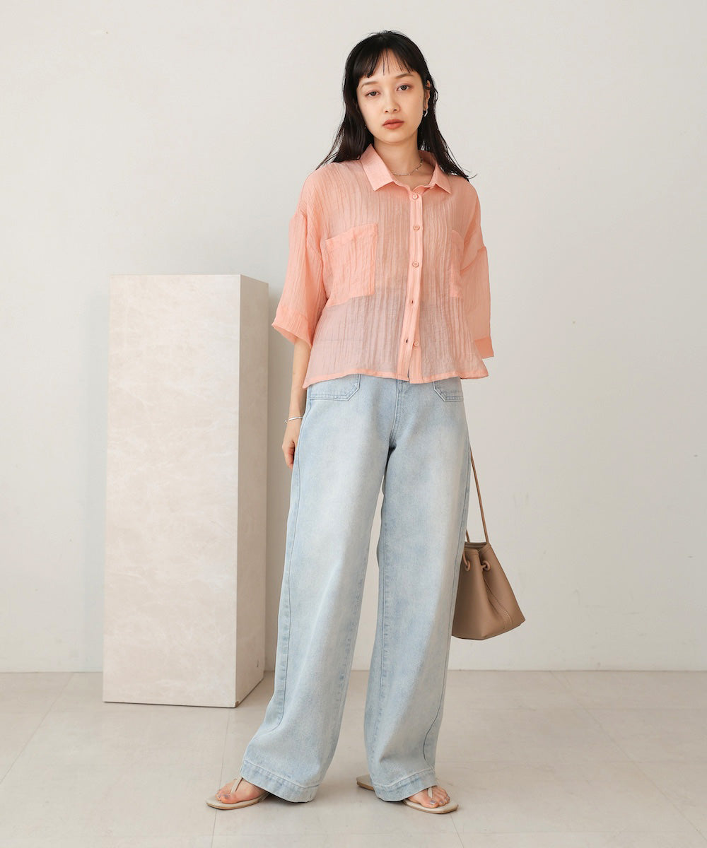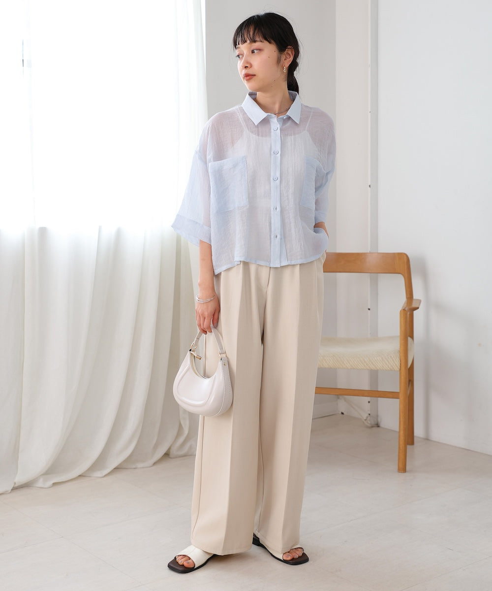 透け過ぎない適度なシアー感で いつものレイヤードコーデを大人なヘルシースタイルに仕上げてくれます。