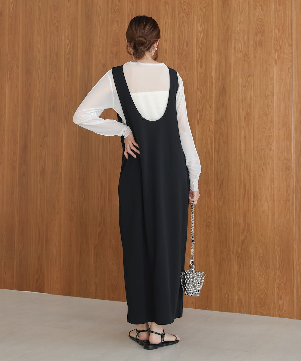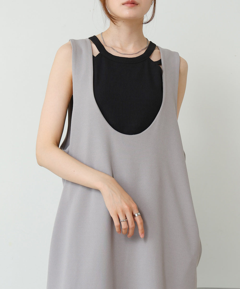 フロントジップと深くあいたUネックの前後2WAYでお召しいただけるジャンパースカートが登場しました。