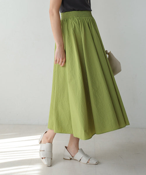 光沢感がありサラッと一枚でコーディネートのワンポイントとなるスカートです。 ナイロン素材を使用しておりますので、乾きやすく耐久性にも優れております。