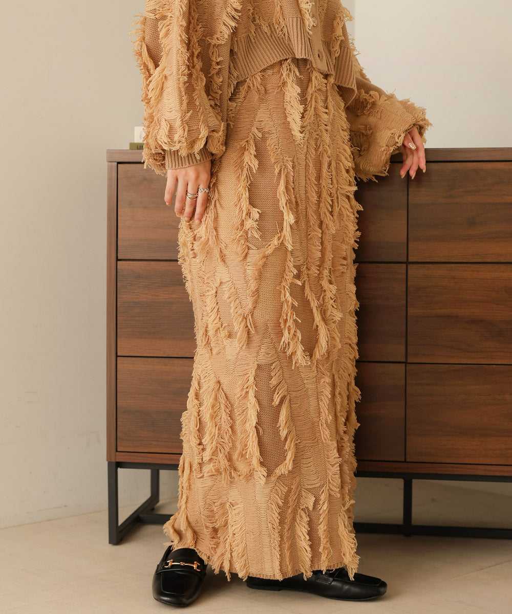 【S・Mサイズ展開】【セットアップ対応】ミックスフリンジニットスカート