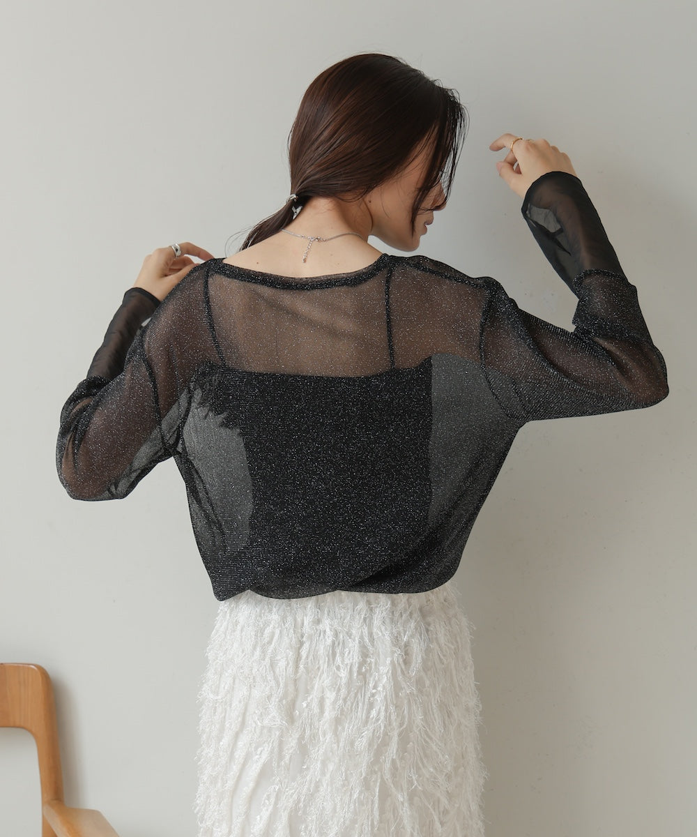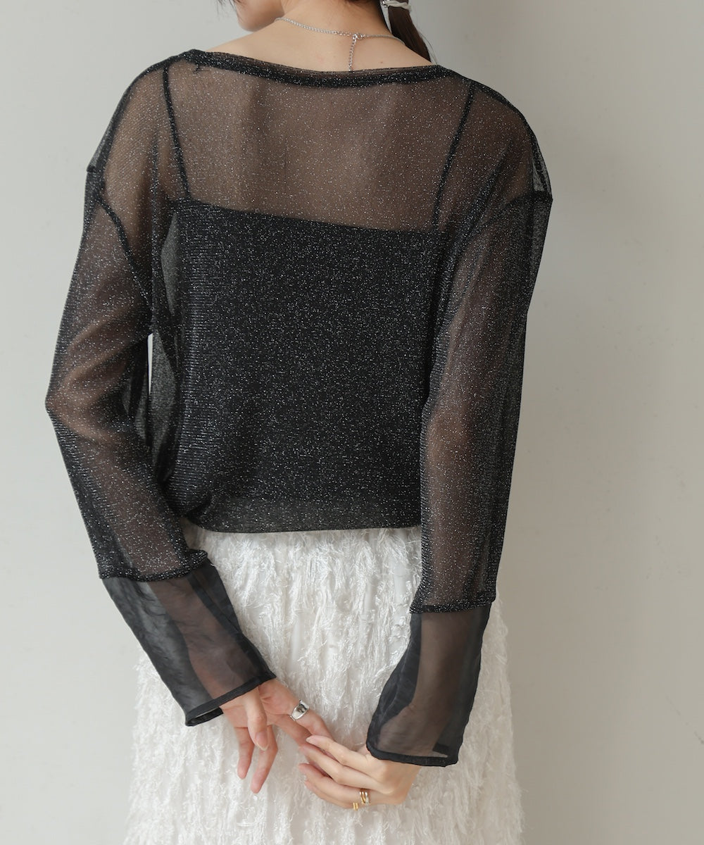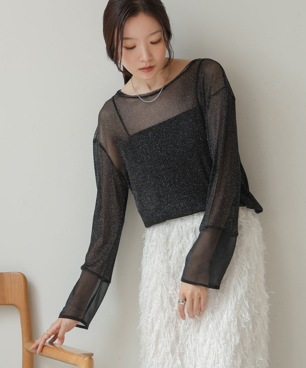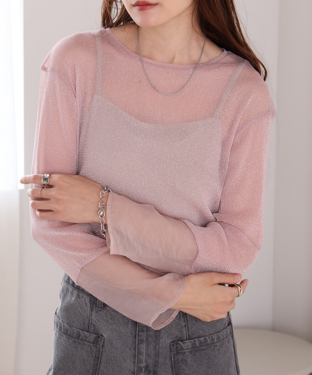 カップ付きキャミソールを合わせるだけでも着映えする華やかトップス!