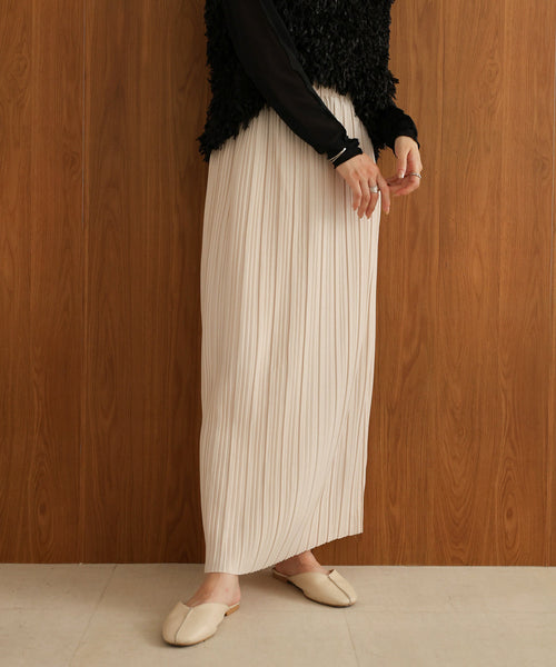 くっきりとしたプリーツ加工がコーディネートに華を添えるミディアムスカートが登場です!