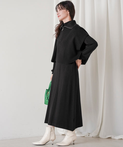 トップスは、裏側にリブが見える総針表針抜きのハーフジップショートデザイン。