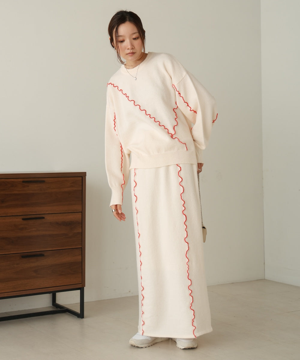 【大人気ニット/5色展開/セットアップ対応】ウェーブメロウニットトップス
