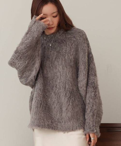 首元をほどよく覆うスタンドネックが印象的なフワフワのケガキニットプルオーバー!見た目にも暖かく、可愛らしいフェミニンな印象を与えてくれる一枚です。