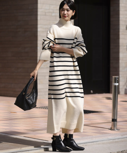 一枚でカジュアルなんだけど、大人が着てきちんと決まるハイネックニットワンピース。 袖リブですっきり見えするのがポイント。 背中の表リンキングや裾スリットが後ろ姿も抜かりないデザインです。 程よいIラインシルエットで、すっきり着れるので ファーベストの重ね着やアウター選びに迷いません。 一枚あると確実に重宝します。38サイズとトールサイズ展開ですので、 お好みの着丈をお選び頂けます。