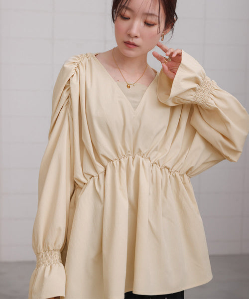 ショルダー部分とウエストにたっぷりと入ったギャザーがガーリーな雰囲気を演出してくれます。