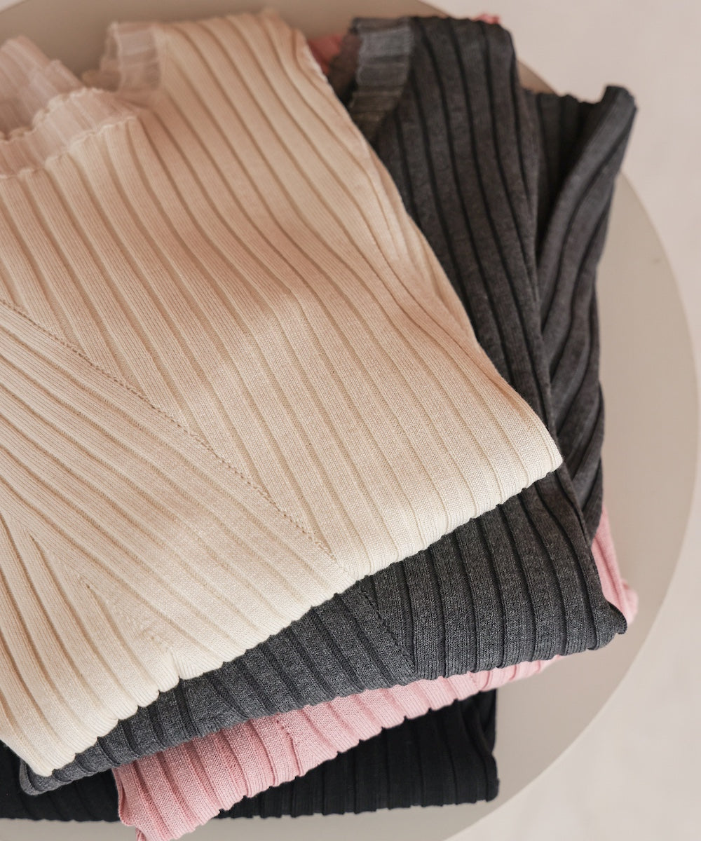 フロントのランダムなリブデザインが着映えも叶えてくれる、色違いで揃えたくなる万能トップスです。