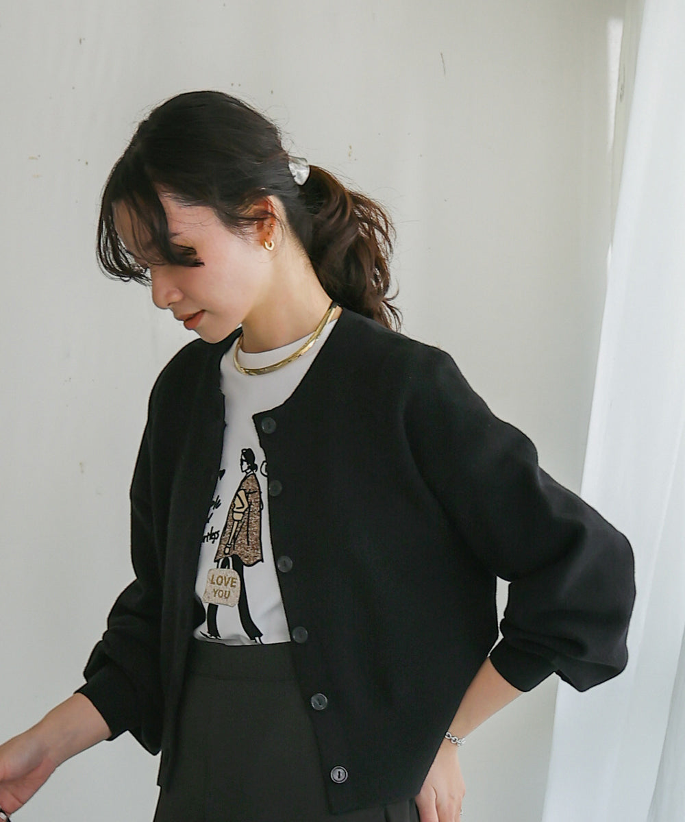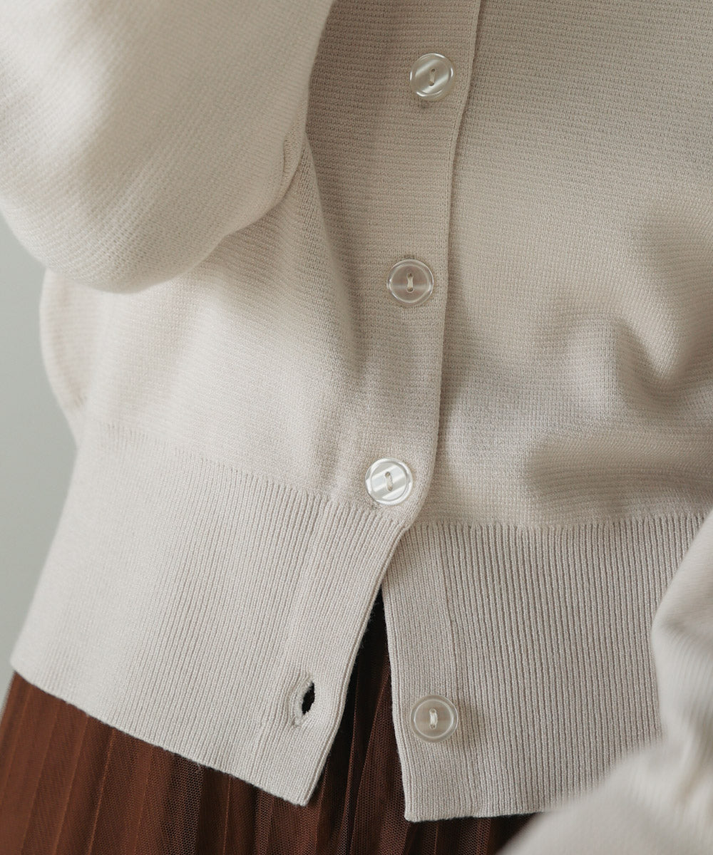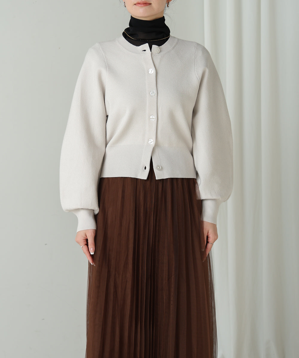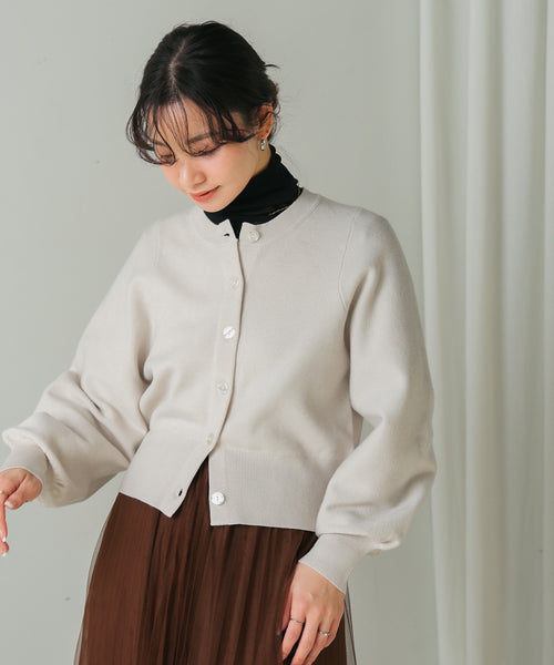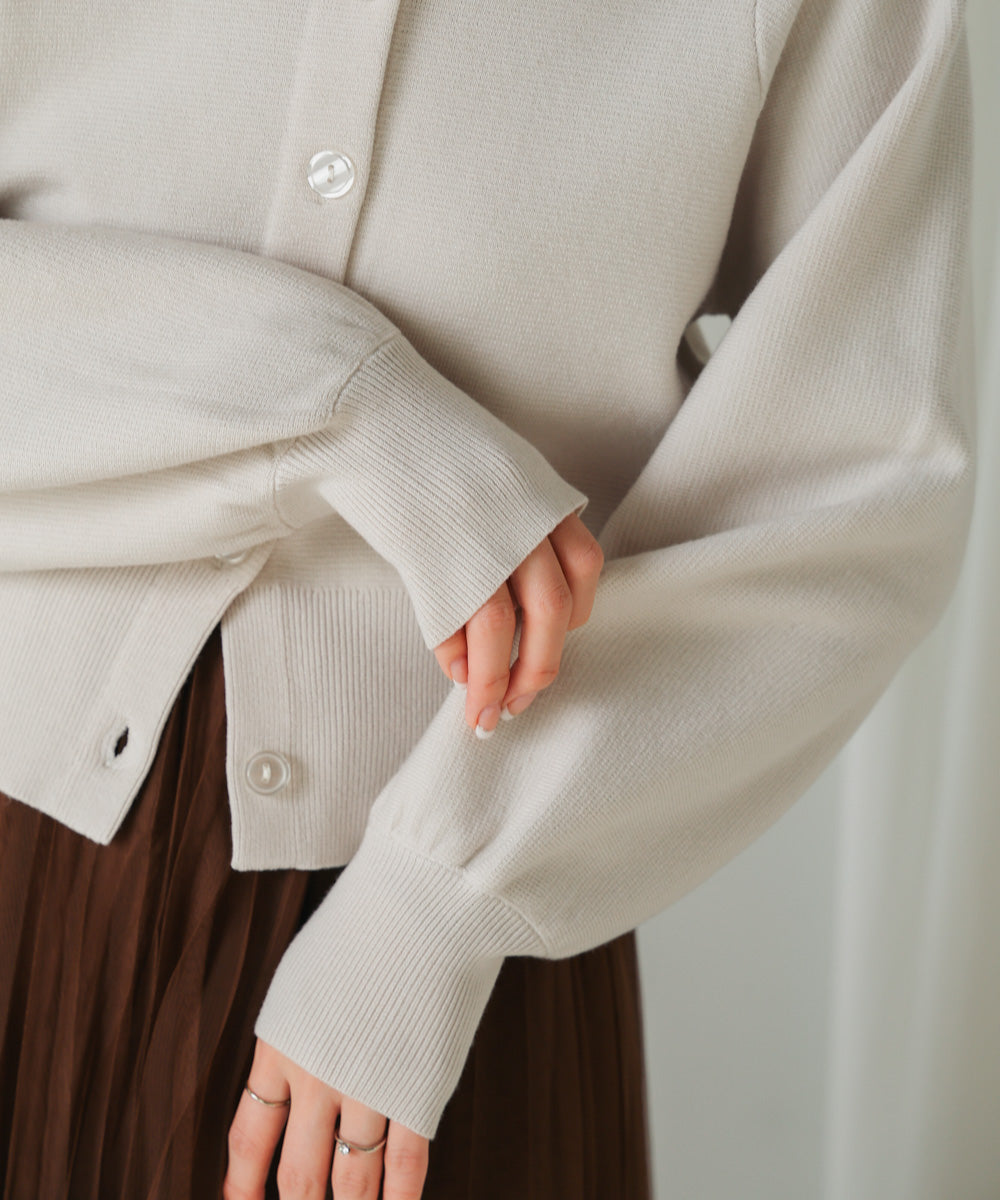 コンパクトなシルエットに、ボリューム感のある細みのドルマンスリーブが特徴のカーディガン。シンプルながらフェミニンで、ワンピースやスカートにも合わせやすい。春らしいカラーが魅力です。