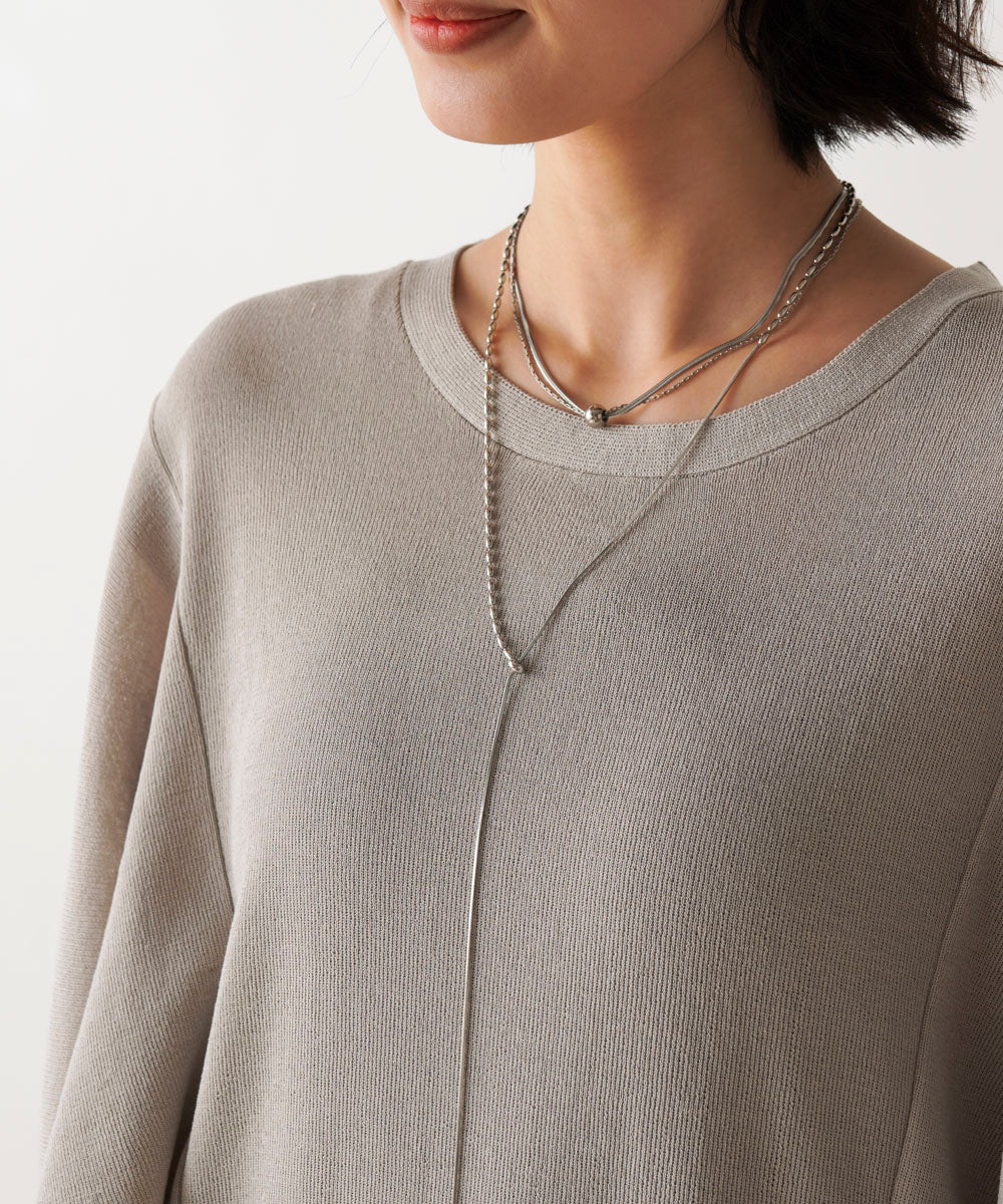ほどよい厚みとハリのある総針編みで、表面がなめらかに整った仕上がり。 さらに、UVカット機能とひんやり感を感じられる接触冷感加工つきで、暑い日も快適。見た目のきちんと感と、 着心地の良さをどちらも叶えてくれる素材です。