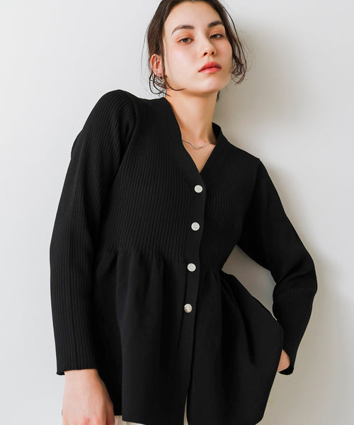 膨らみとストレッチのある糸で編んだニットカーディガン。 軽さと立体感のある糸で仕立てているので、トレンド感のあるペプラムシルエットが美しく広がります。 ややハイウエストからのペプラムシルエットなので、スタイルアップして見せてくれます。気になるお腹周りもさりげなく隠してくれるのも嬉しいポイント。 前を閉めてトップスとして着ても、前開きにして軽羽織として使うのも◎