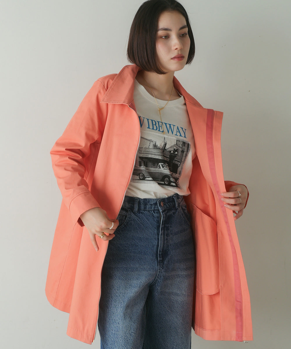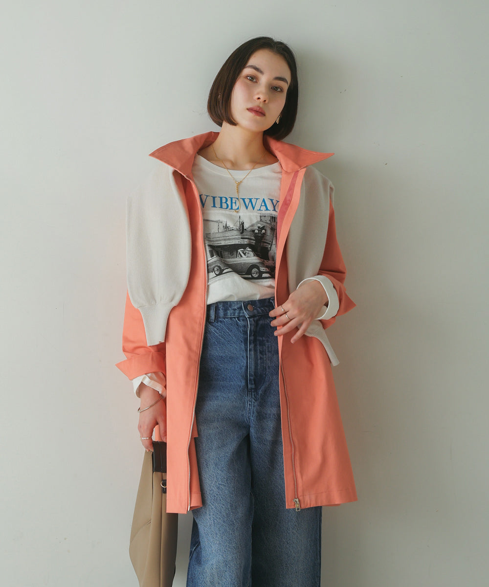 通年人気のストレッチ感抜群のコート。 カジュアルになりすぎず、サラッと羽織ってお使い頂けるデイリー使用のコート。 ファスナーを開けて着た際にチラ見えるグログランテープがアクセントになります。