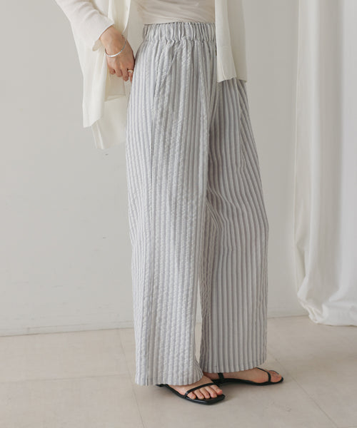 シンプルなセミワイドシルエットで、広がりすぎずに、何でも合わせやすく仕上げました。