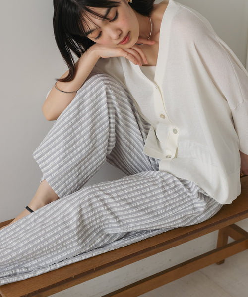 表面に凹凸があるため、肌に触れる面積が少なくなり、さらっとした肌触りと涼しげな印象のあるサッカー生地。