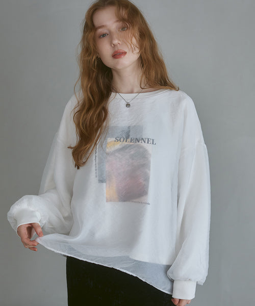 シアーレイヤードプリントスウェットトップス