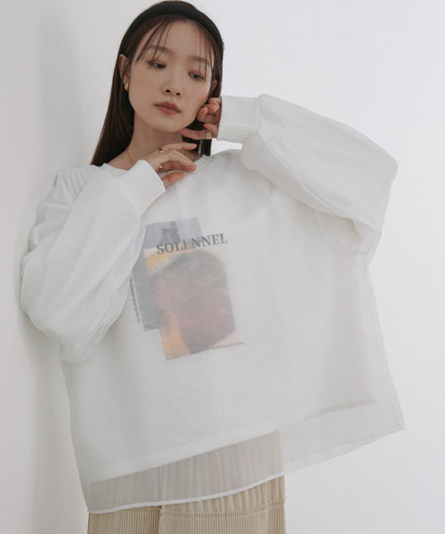 Babで人気のレイヤードスウェットシリーズから今年はシアーレイヤードプリントトップスが登場しました!トレンド感のあるシアー素材をレイヤードしたプリントスウェットトップス。シンプルなスウェットに一枚シアーを重ねるだけで程よい透け感をプラスすることができ、カジュアルなスウェットながらも女性らしい抜け感を演出してくれます。プリントデザインがスタイリングのアクセントになり、1枚でコーディネートが決まるのも嬉しいポイント。デニムやスカートはもちろん、ワイドパンツなどリラックス感のあるアイテムとも好相性。デイリー使いからちょっとしたお出かけまで、幅広く活躍してくれる1着です。