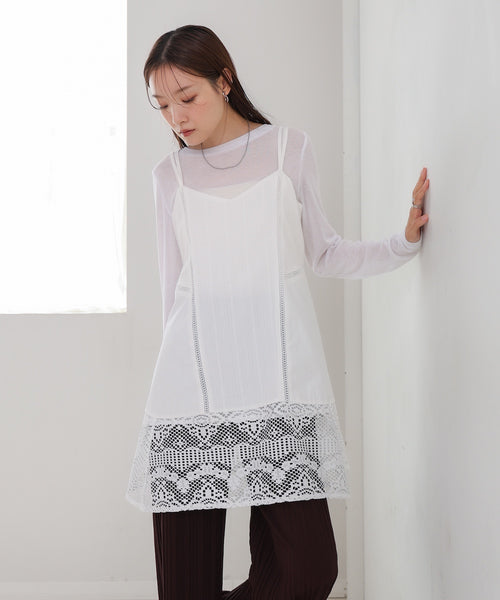裾に施された繊細なレース柄が目を引くミニワンピースが登場しました!シルエットは広がりすぎないAラインを意識して仕上げているので着るだけで上品な雰囲気が出ます。肩ひも部分は調節可能になってるのでお好きな長さでお楽しみいただけます。