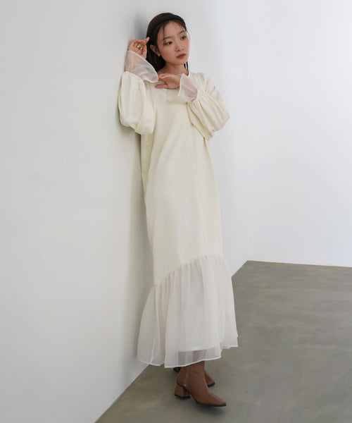 【選べるサイズ展開】オーガンジー切替スウェットワンピース