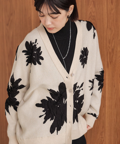 【新色追加】フラワージャガードドルマンニットカーディガン[BLACK/GRAY/ECRUは12/26発送予定]