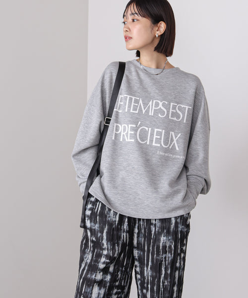 印象的なビッグロゴですが、華奢なフォントを使用しているので柔らかな雰囲気。 スカートスタイルからパンツスタイルまで幅広くあわせやすいロンTです。