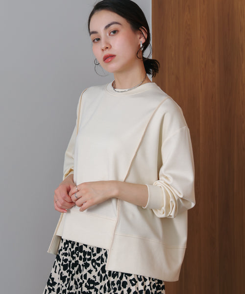 パウンドケーキの様に軽く柔らかい素材を使用。 柔らかくもっちりとした肌触りで、着心地抜群。 フロントの裾がややショートに、サイドの丈が長めになった一癖あるデザインでコーデのポイントに! バックの裾にファスナーを施し、後ろ姿まで抜かりなく可愛い一枚です。