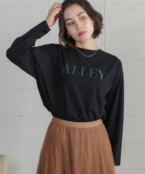 程良い肉感とストレッチの効いた着心地の良い素材を使用した 大人カジュアルロゴロンTです。 厚盛りの刺繍がポイント 艶のある糸を使用し、エレガンスなフォント を使用する事でキレイ目に仕上げました。
