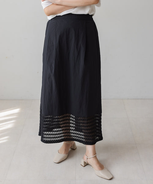 品さと快適さを両立した、大人のためのタイトスカート 裾に繊細なレースをあしらった、タフタ素材のタイトスカート。さらりとした肌ざわりで、蒸し暑さの残る季節でも快適に着用できます。程よいハリ感のあるタフタが、シルエットを美しくキープし、きちんと感も演出。ウエストはゴム仕様で、見た目以上にらくちんな履き心地。 フェミニンなレースのディテールが、シンプルなトップスと合わせるだけでコーデを格上げしてくれる一枚です。