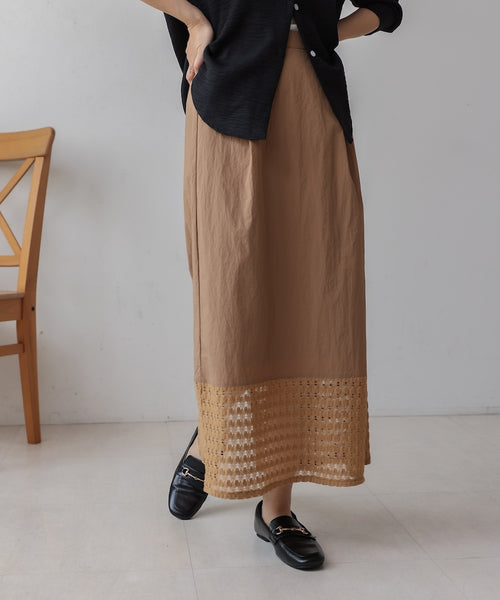 品さと快適さを両立した、大人のためのタイトスカート 裾に繊細なレースをあしらった、タフタ素材のタイトスカート。さらりとした肌ざわりで、蒸し暑さの残る季節でも快適に着用できます。程よいハリ感のあるタフタが、シルエットを美しくキープし、きちんと感も演出。ウエストはゴム仕様で、見た目以上にらくちんな履き心地。 フェミニンなレースのディテールが、シンプルなトップスと合わせるだけでコーデを格上げしてくれる一枚です。
