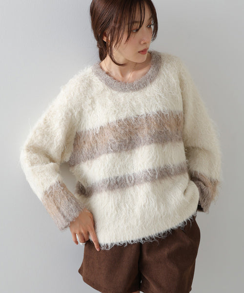 繊細な毛羽立ちと柔らかな風合いが魅力のボーダーケガキトップス。ニュアンス感のあるカラー配色が、シンプルながらもおしゃれに映える一枚です。軽くて着心地がよく、程よいゆとりのあるシルエットでデイリー使いにもぴったり。カジュアルにもきれいめにも馴染む、ボーダートップスです。