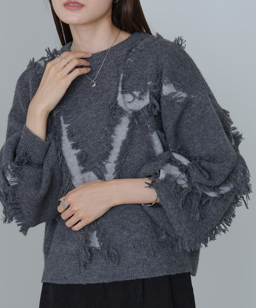 ふんわりとしたシャギー素材で立体感を出したジャガード柄が目を惹くニットトップス。ところどころに施されたシャギーが遊び心のあるようなデザインでシンプルな着こなしにも映える1枚です。軽やかであたたかく、柔らかな肌触りが魅力。少しゆったりめのシルエットとUネックが抜け感を演出し、女性らしさを引き立てます。デニムやワイドパンツでカジュアルに、フレアスカートで上品にと、幅広いコーディネートを楽しめる万能アイテムです。