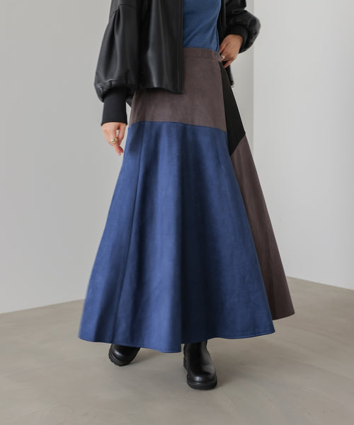バイカラーフェイクスウェードスカート