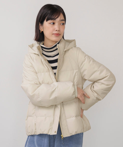 コンパクトな着丈とすっきりとしたシルエットが特徴のデイリーダウン。 程よいボリューム感でありながら着膨れしにくく、パンツにもスカートにも合わせやすい万能アイテムとなっています。 フードにつながるスタンドカラーは顔周りに立体感をつくり防寒性◎ 軽量で着心地よく、さっと羽織るだけで冬コーデが決まる、実用性とデザイン性を両立したアウターです。