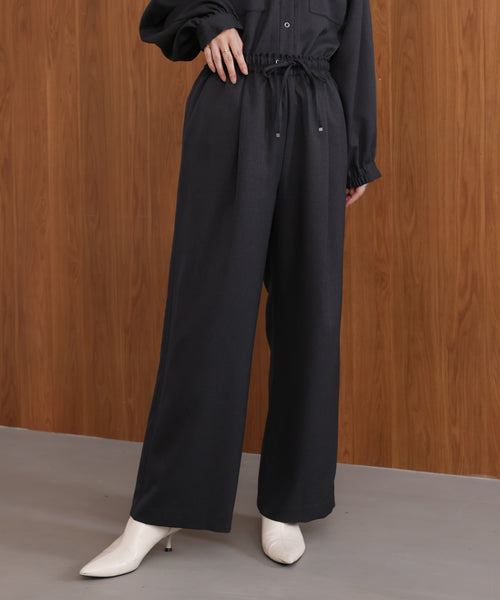 柔らかい素材と落ち感で肌触りよく着用できるアイテムです。 サイドに切り替えたラインは縦長効果も期待できるアクセント。 ウエストゴムでストレスフリーにオンでもオフでも活躍します。