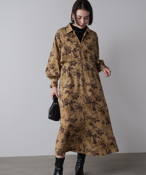 上品な花柄プリントをのせた、さらりとした素材を使用。 軽やかな着心地でシーズンを問わず着やすく、長時間着てもストレスを感じにくいのが魅力です。 歩くたびにふんわり広がるシルエットを、素材の柔らかさが引き立てます。