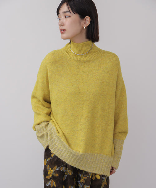さっと着るだけでこなれた雰囲気が出る、ミックス配色ストレッチニットプルオーバー。 袖口と裾には、2色の糸を引きそろえたさりげない配色をプラス。主張しすぎないのに、ぐっと印象が華やぐデザインです。 体をふんわり包むゆとりシルエットで、気になるラインも上手にカバー。 前後差のある着丈は、後ろが長めだからヒップまわりをきれいに隠して、横から見てもすっきり。 さらに、ハイネックがやさしく首元を守ってくれるので、寒い日も安心しておしゃれを楽しめます。