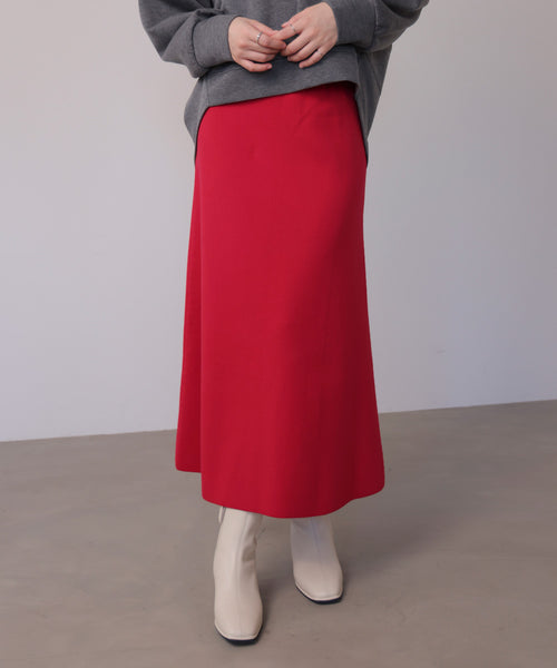 程よい厚みのニットスカート。シルエットはセミAラインでタイト過ぎず広がりすぎないシルエットが様々なTOPSに合わせやすく、すっきりと見せてくれる優秀なアイテムです。 表面感は毛羽立ちがなく、さらりとしているので布帛のスカートのようにTOPSの素材を選ばずに合わせやすく、もったりとせずに抜け感のある着こなしが完成します。 もちろんニット素材なので、伸縮性があるので着心地も◎