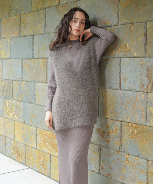 ベストはしっかり加工をして毛足を出すことで、ボリューム感もばっちり◎ ワンピはもっちりとしたチクチク感のない糸を使用。リブ編みで身体のラインを拾い過ぎないのも嬉しいポイント。