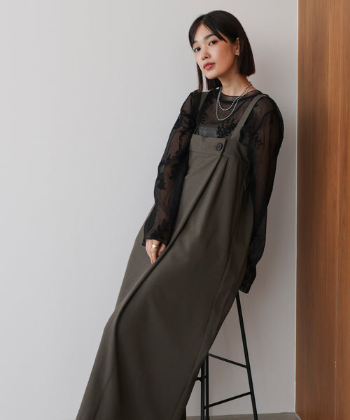 ツイル素材特有のハリ感を活かしたラップ風ペンシルワンピース。シンプルなラインにベルトデザインを効かせることで、モード感と女性らしさを融合。バックはゴム仕様でフィット感があり、肩ベルトの調整で自分らしい着こなしが楽しめます。